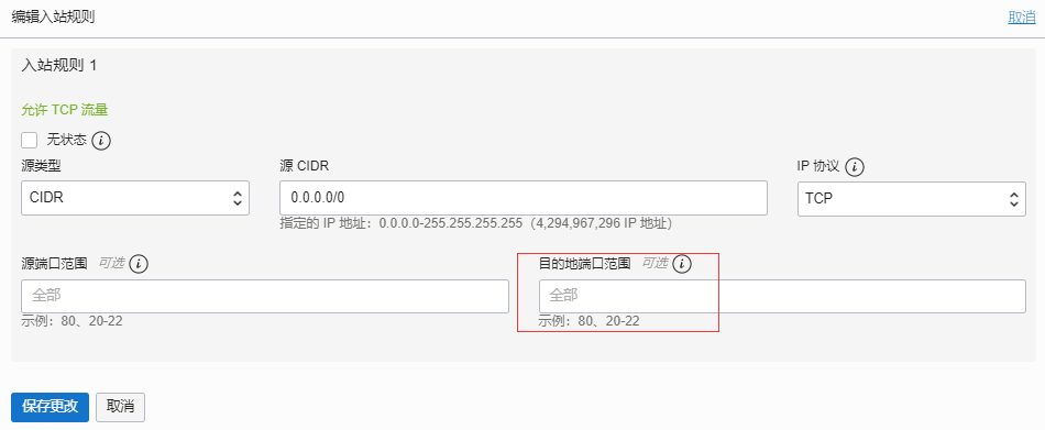 5)编辑第一条数据。将目的地端口范围里的数据清空!保存即可!!