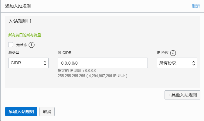 机器默认仅开通了22端口,如果你创建服务器没有勾选公网IP,后来又申请的公网IP,那么所有端口都没开放!