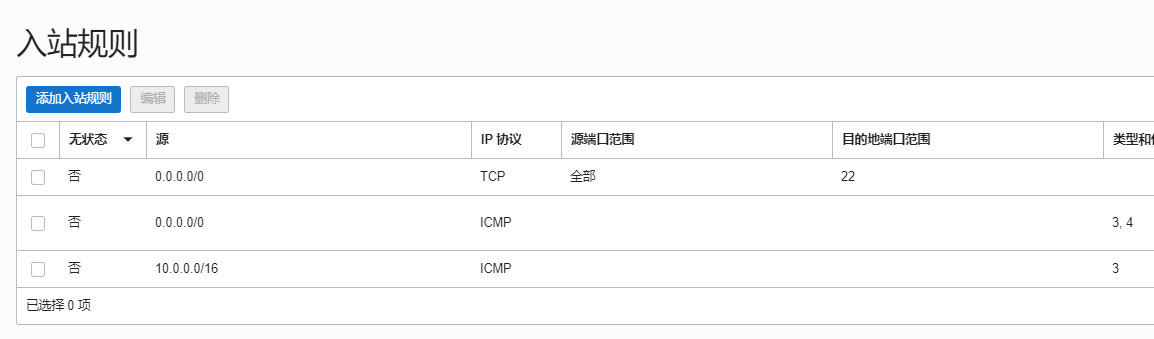 4)入站规则,可见仅开放了22端口!ICMP 也是关闭的(禁ping)!