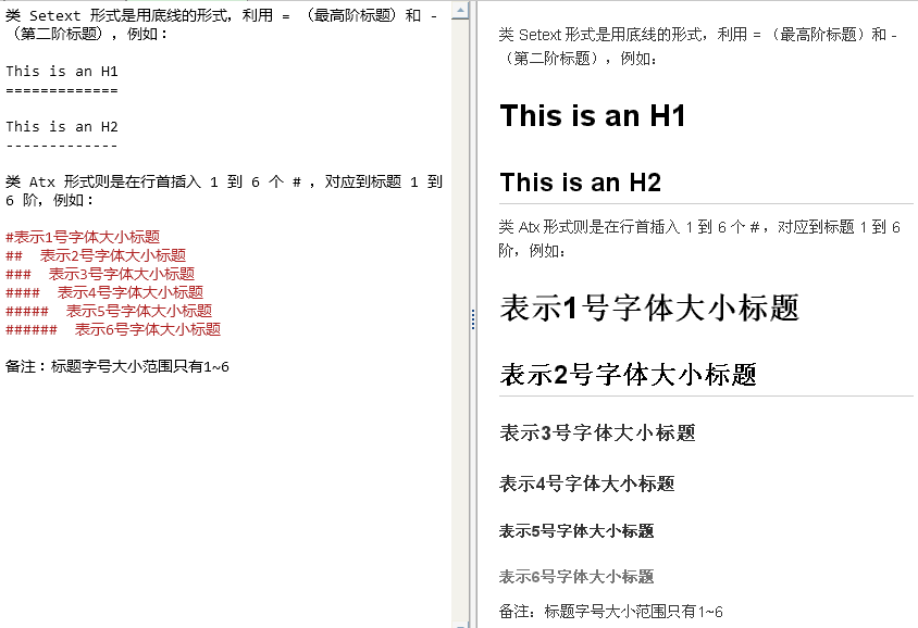 类 Atx 形式则是在行首插入 1 到 6 个 # ,对应到标题 1 到 6 阶,例如: