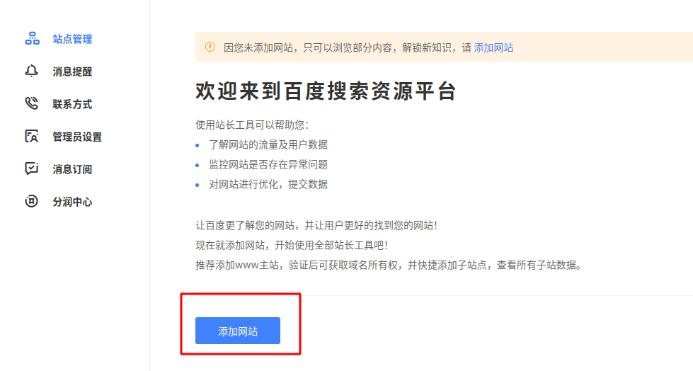 百度提交网址入口,用百度账号登录后,还是添加网站的过程