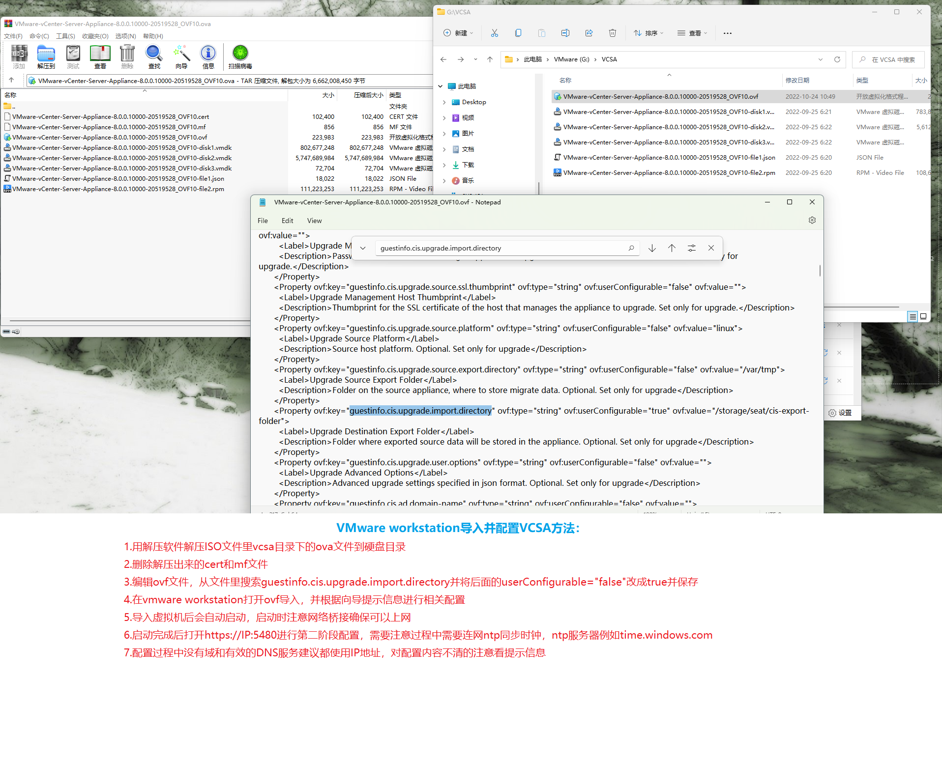 1.用解压软件解压ISO文件里vcsa目录下的ova文件到硬盘目录