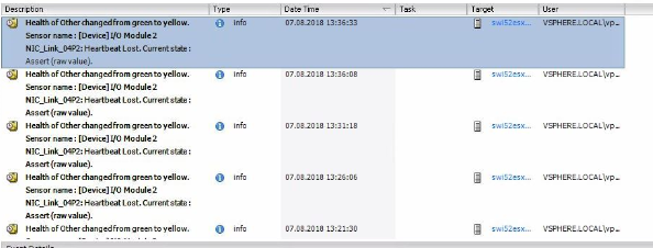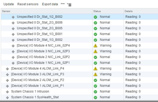 - The device state might be displayed as warning: [Device] I/O Module n ALOM_Link_Pn or [Device] I/O module n NIC_Link_Pn