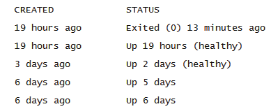 Exited(0):表示容器正常退出Exited(其他数字):容器异常退出,需要通过log 查看原因Up:容器在运行状态Up(Paused):容器暂停Up(healthy):容器监听健康