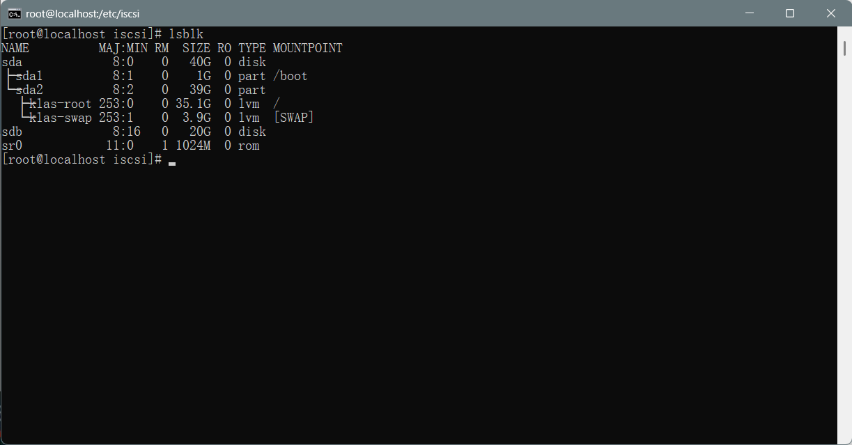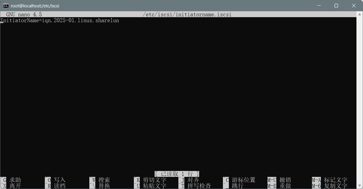 InitiatorName=iqn.2025-01.linux.sharelun #名称必须和存储服务器配置相同