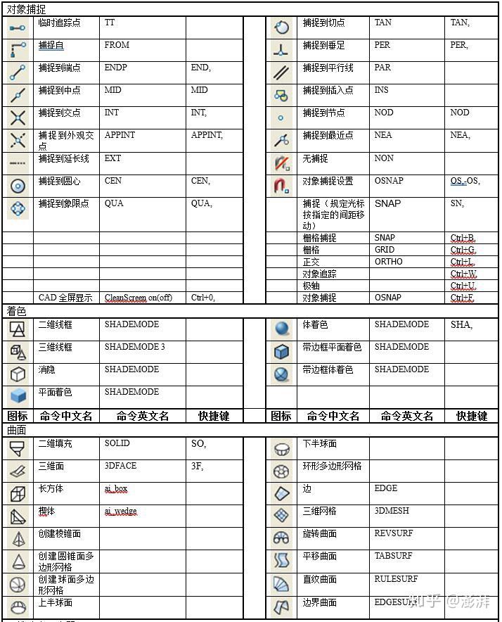 对应的CAD全集视频教程,需要的各位道友自行购买学习!包指导解答学习问题! 作为一个CAD软件十年以上使用经验的老油条来说,左手键盘,右手鼠标是标准的工作姿势,但工作中时不时还是会需要用到一些自己不常用的命令,或者别人问到一些自己没用过的命令,这些命令工具有时还是真不知道从何找起,所以把自己把前几年保存下来的资料翻找出来分享一下,我觉得这个CAD快捷命令大全汇总表对CAD新手或像我这样的CAD老手都非常有用,碰到不知道CAD命令快捷键打开表格按目录翻一下就可以了,不知不觉又记住一个命令。
